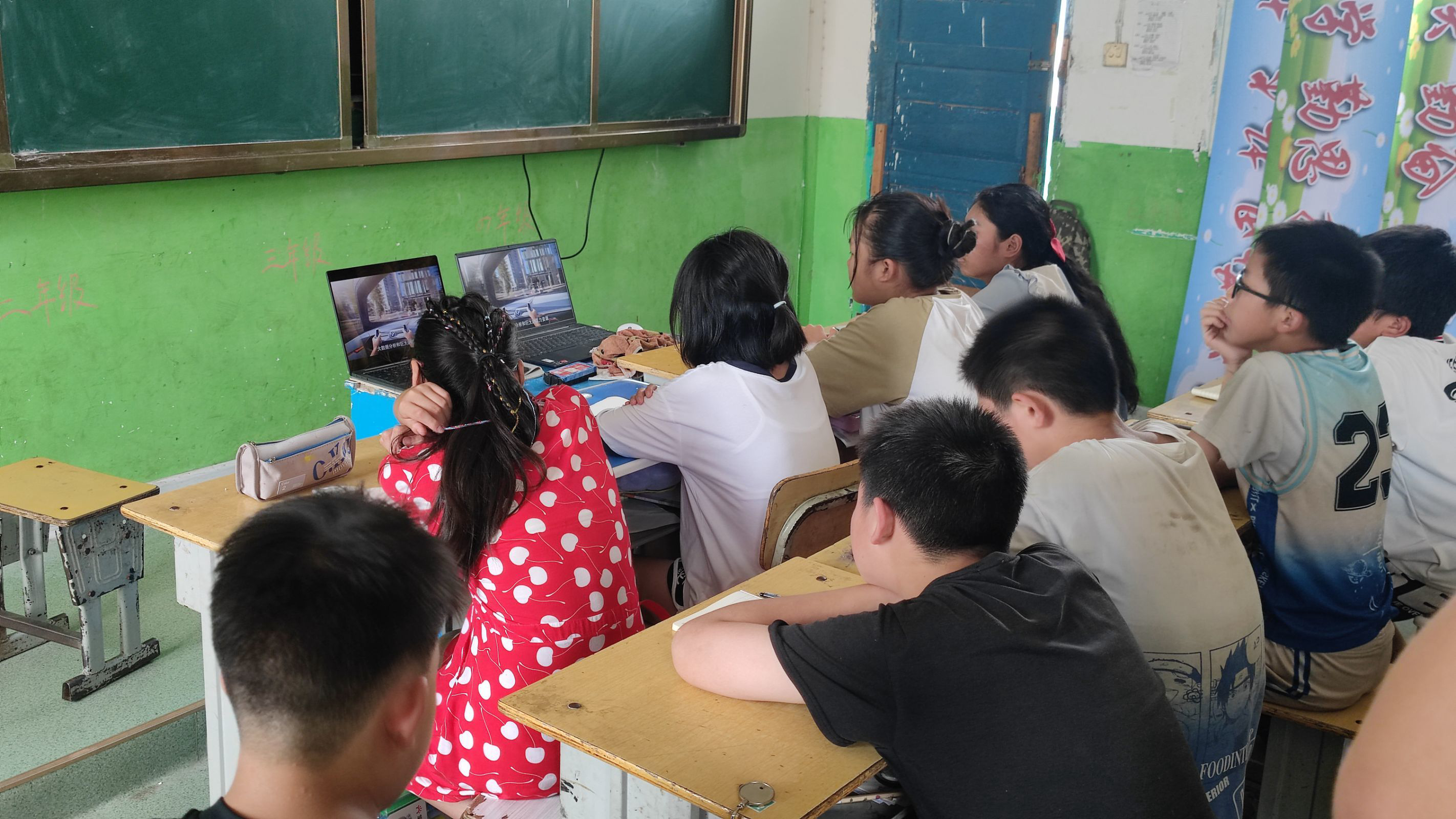 图为团队负责人为散花村学生播放宣讲视频。中国青年网通讯员 涂欣磊 供图